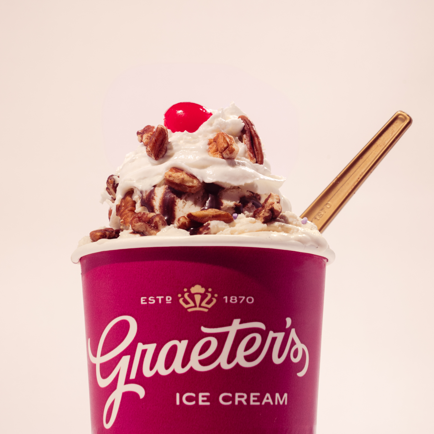 - Plenty of the following toppings - Chocolate, butterscotch, strawberry, whipped cream, pecans, and cherries
