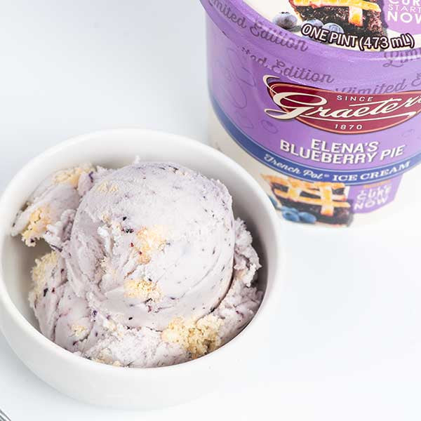 A portion of this flavors proceeds go to The Cure Starts Now Foundation. Elena's Blueberry Pie combines the rich taste of pie crust with blueberries in this ice cream.